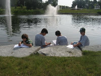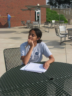 Imagine . . . thirty-two middle school students one week, thirty-five high school students the next, waking up early to walk a writing marathon across the campus of Eastern Michigan University. With notebook and pen in hand, talking and laughing with friends, they look for the perfect spot to rest and continue writing. On the back of each camper’s gray Inkstains t-shirt are the words of John Updike, “I want to write books that unlock the traffic jam in everybody’s head.”