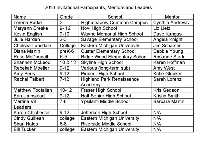 The 2013 Summer Invitational Institute Orientation, when participants meet their mentors, will take place on April 30th in room 320 at EMU’s Student Center from 5-7:30.